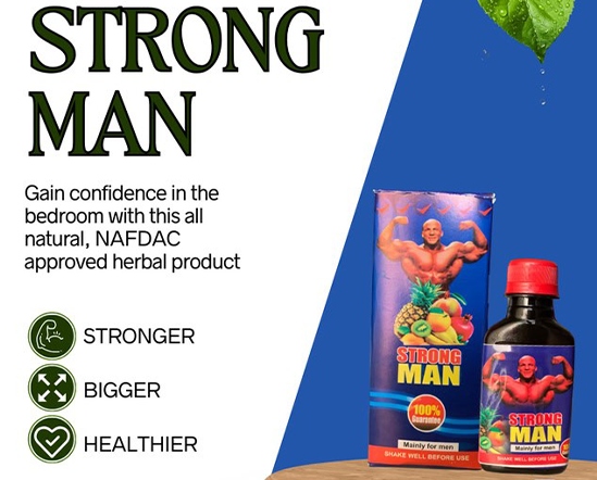 Strong Man Power is a Unique herbal product derived from herbs such as Maca roots, ginseng, fenugreek etc which are used to stimulate sexual desire. It is important to note that this product is all organic and has no chemicals or synthetic properties in it. It is NAFDAC approved which means that it has undergone adequate scrutiny and has met the requirements which makes this product absolutely safe.