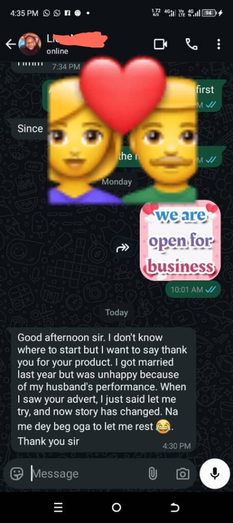 Read below the Feedback and Testimonies Customers have about STRONGMAN Herbal Syrup